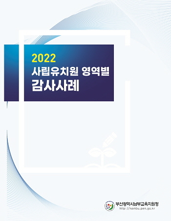 부산시남부교육지원청이 사립유치원 감사 사례 공유를 통해 유사 사례의 재발을 막기 위해 ‘2022 사립유치원 영역별 감사 사례집’을 최근 발간했다고 7일 밝혔다.