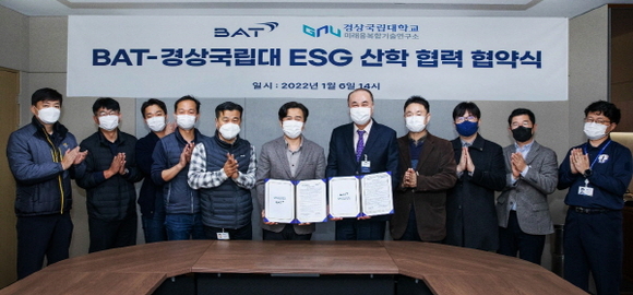 경상국립대학교 미래융복합기술연구소와 BAT코리아제조(주)(이하 BAT 사천공장)는 지난 6일 오후 BAT 사천공장 회의실에서 ESG 산학협력 협약을 체결했다.