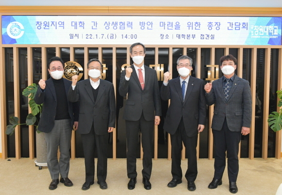 창원대학교는 7일 대학본부에서 ‘창원지역 대학 간 상생협력 방안 마련을 위한 총장 간담회’를 개최, 창원대학교, 경남대학교, 마산대학교, 창신대학교, 창원문성대학교 등 창원지역 5개 대학이 참여하는 ‘창원지역 5개 대학 총장협의회’를 발족했다고 밝혔다.