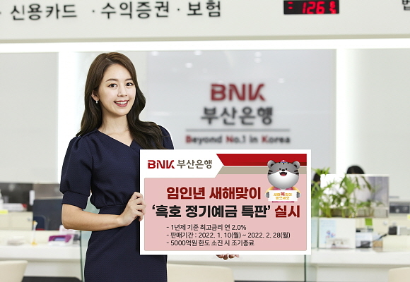 BNK부산은행이 임인년 새해를 맞아 ‘흑호 정기예금 특판’을 오늘(10일)부터 온·오프라인 방식으로 시행한다고 밝혔다.