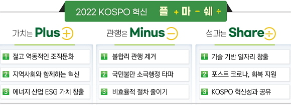 남부발전은 이 회담에서 시민 의견을 모아 ‘가치 플러스(더하기)’ ‘관행 마이너스(빼기)’ ‘성과 쉐어(나누기)’를 의미하는 혁신 슬로건 ‘KOSPO 혁신모델 플·마·쉐’를 구상했다.