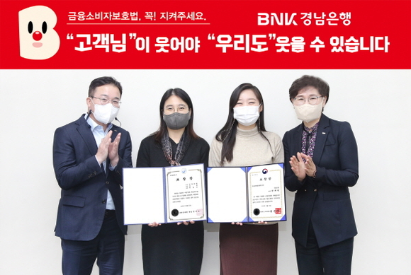 BNK경남은행은 금융소비자보호부 소속 직원 2명이 ‘교육부장관 표창’과 ‘금융감독원장 표창’을 각각 수상했다고 10일 밝혔다.