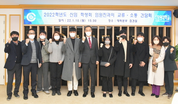 창원대학교는 대학본부에서 이호영 총장과 2022년도 중앙 학생자치기구 회장단이 학생 중심 대학의 미래발전을 함께 모색하는 소통 간담회를 개최했다고 11일 밝혔다.