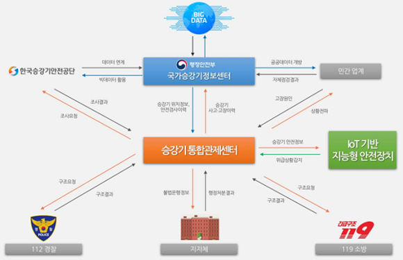 최신 정보기술이 적용되는 이번 사업의 핵심은 지능형 영상분석 및 음성인식 기술을 탑재한 IoT 안전장치를 통해 승강기 내부의 위급상황을 24시간 감지하고 GIS 기반 통합관제시스템과 상황전파 앱을 통해 최단거리의 관리 주체나 유지관리업체 직원 등에게 전송, 신속한 구조 활동을 지원하는 것이다.