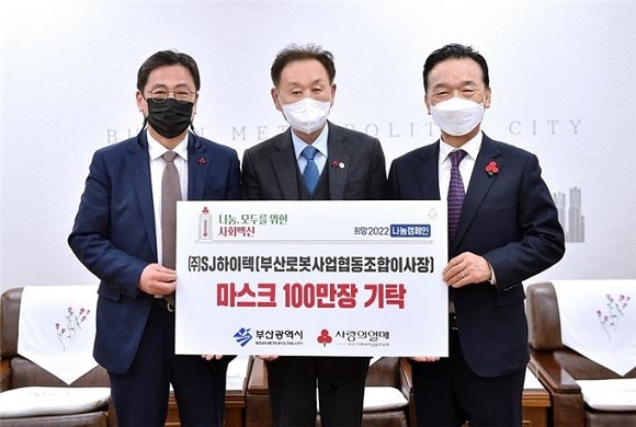 부산시는 이날 SJ하이텍이 기증한 덴탈 마스크를 부산사회복지공동모금회에 기탁했다. 마스크는 모금회를 통해 부산지역 내 방역 취약계층과 초·중·고 학생 등에 배부될 예정이다.