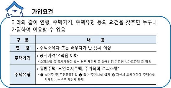 아울러 소득세법상 고가주택의 가격 기준이 시가 9억원에서 12억원으로 개정됨에 따라 주택연금의 월 지급금 산정 시 인정되는 주택가격 상한도 12억원으로 변경된다.