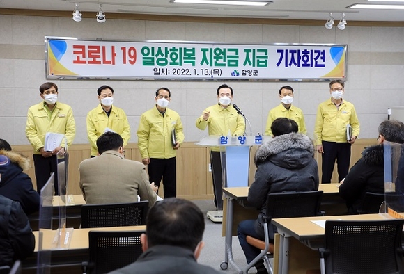 서춘수 함양군수는 13일 군청 소회의실에서 기자회견을 갖고 '코로나19 일상회복 지원금' 관련 지원계획을 발표했다.