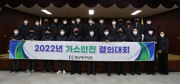 경남에너지는 지난 12일 창원 본사 대강당에서 현장의 무재해와 무사고를 다짐하는 '2022년 가스안전결의대회'를 가졌다.