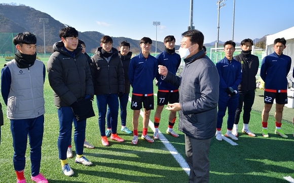 경남 합천군은 지난 13일 문준희 군수, 배몽희 군의장, 김해은 군체육회장, 도영환 합천축구협회장이 동계전지훈련지로 군을 찾은 축구팀들을 방문해 감사의 말과 함께 선수와 지도자들을 격려하고, 전지훈련 운영상황을 점검하는 시간을 가졌다.