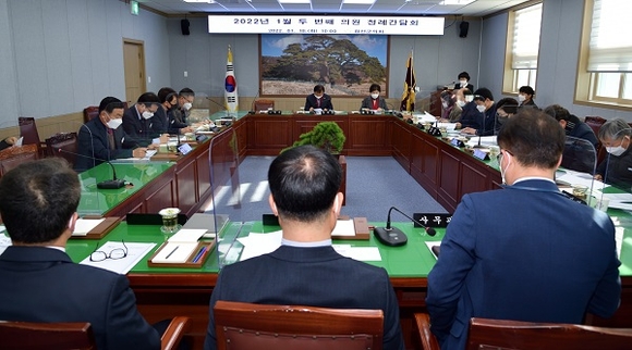 이번 정례간담회에서는 '남부내륙철도 기본계획 확정 고시'에 관한 집행부의 보고와 함께 2022년 연간회기 운영일정 등 의회 주요 운영사항을 협의했다.