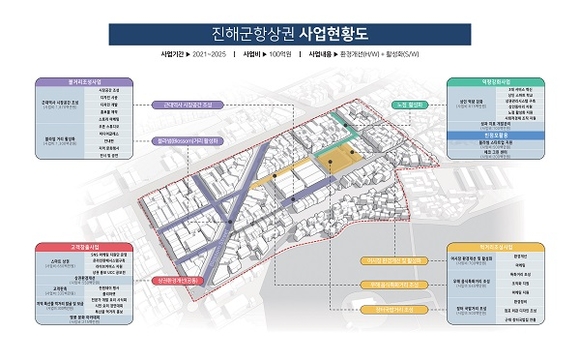 진해군항 상권르네상스사업은 '근대역사문화공간 시간여행'을 테마로 2021년부터 2025년까지 5년간 총 사업비 100억원을 지원, 진해중앙시장과 화천상가 일대를 상권활성화구역으로 지정하고 환경개선(하드웨어)사업과 상권활성화(소프트웨어)사업의 종합적 지원을 통해 쇠퇴한 구 진해지역 상권을 다시 부흥시키고자 하는 사업이다.