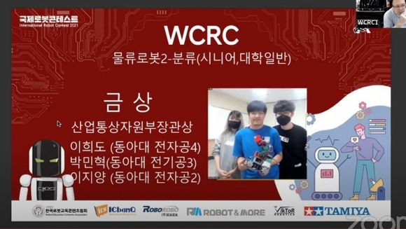 동아대학교는 전자공학과 로봇동아리 ‘MICCA(미카)’ 학생들이 국제로봇 콘테스트 ‘2021 WCRC(World Creative Robot Contest)’ 3차 본선과 4차 본선에서 다수 입상하는 쾌거를 올렸다고 19일 밝혔다.