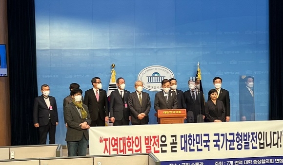 이번 연합은 전국 4년제 일반대학 협의체인 ‘한국대학교육협의회’ 소속 9개 권역 가운데 비수도권인 7개 권역의 127개 대학 총장들로 구성된 협의회다. 7개 권역 대표 대학총장들은 국회 소통관에서 ‘정책 청원문’을 발표하고 지역대학 발전을 위한 5대 정책을 건의했다.