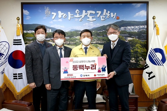 BNK금융그룹이 설 명절을 맞아 20일 김해시를 방문해 2500만원 상당의 온누리상품권을 기탁했다.