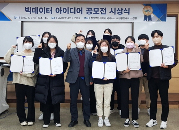 경상국립대학교(GNU) 빅데이터 혁신공유대학 사업단(이하 빅데이터 사업단)은 지난 21일 공과대학 2층 대회의실에서 ‘빅데이터 아이디어 공모전’(부제: 빅데이터, 우린 깐부잖아) 시상식을 개최했다고 25일 밝혔다.