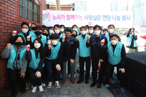 코로나19 장기화로 부산지역 연탄 후원이 지난해에 비해 40%나 급감하며 주거취약 노인들이 어려움을 겪고 있다는 소식을 접하고, 노‧사가 자발적으로 십시일반 모금한 500만원으로 연탄 6250장을 기증하고 독거노인 30여 세대에 배달했다.