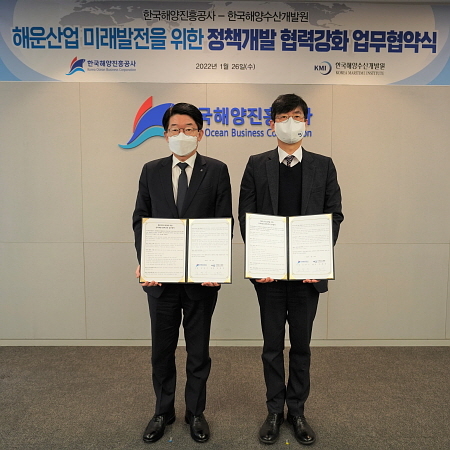 한국해양진흥공사와 한국해양수산개발원(KMI)이 지난 26일 해양진흥공사 대회의실에서 ‘해운산업 정책 개발 위한 상호 협력 강화’ 업무협약을 체결했다고 27일 밝혔다.