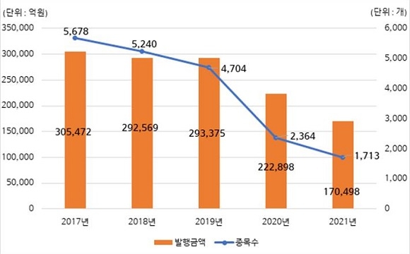 발행형태별로는 사모발행이 12조 9719억원으로 전체 발행금액의 76.1%를 차지했다. 또한 공모발행은 나머지 23.9% 비중인 4조 779억원인 것으로 집계됐다.