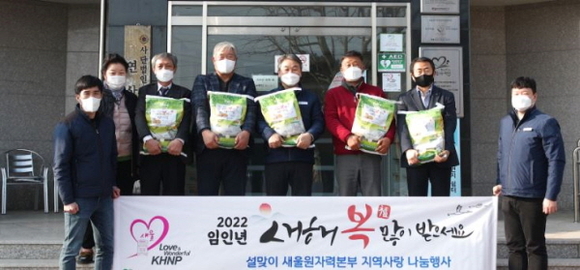 한국수력원자력 새울원자력본부는 지난 26일 민족 고유의 명절인 설을 맞이해 주변지역 자매마을, 복지시설 장애인, 저소득층에 지역농산물(쌀·서생배)을 지원했다.