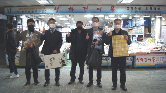 정영태 기장시장 번영회장의 안내로 시장을 둘러보며 기장 특산물 미역과 다양한 수산물을 구매한 황선구 학장은 “상품구성과 가격이 정말 좋은 것 같다”며 “국내산 수산물 구입 시 2만원 캐시백 행사는 엄청난 혜택이라고 생각된다. 상인들이 웃음을 되찾을 수 있도록 전 교직원이 자주 찾아와 장을 볼 수 있도록 하겠다”고 소감을 밝혔다.