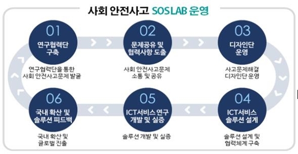 SOS랩 사업은 `20년 과기부 공모에 선정돼 `24년까지 5년간 총 93억 원(국비 55, 도비 13, 창원∙김해시비 25)을 투입하며, 도민들은 정보통신기술(ICT)의 융합이 필요한 사회안전문제를 발굴·제안하고, 도내 ICT 기업들은 관련 SW 서비스를 개발하여 ICT를 통한 사회안전문제 해결을 현실화하는 협력체제로 운영된다.