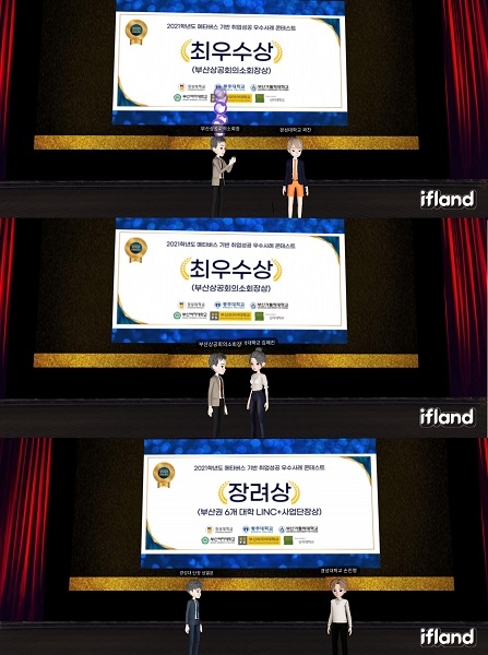 특별히 이번 콘테스트는 학생들이 만든 영상을 메타버스 플랫폼(ifland)에서 상영, 심사위원들과 참여 학생들이 온라인 가상공간에 모두 모여 영상을 보며 심사가 진행됐다. 수상 역시 메타버스 플랫폼 내에서 아바타를 활용했다.