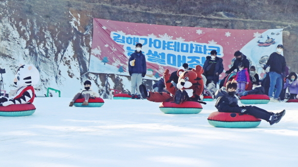 당일인 1일 가야테마파크에는 가족단위 방문객의 발길이 이어졌다. 가야테마파크 관계자들은 “모처럼 긴 연휴를 맞아 많은 분이 도시근교 안전한 비대면 관광지를 찾아 나서고 있다”며 “방문객들은 가족과 함께 민속놀이, 눈썰매 등을 즐기며 명절의 분위기를 만끽했다”고 전했다.