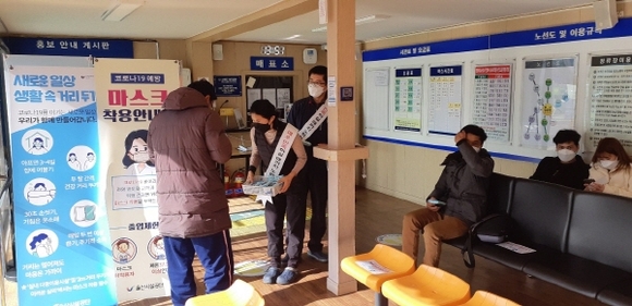직원들은 연휴 기간 부산·울산·경남·경북지방 노선을 운영 중인 언양시외버스터미널을 이용힌 시민 500명을 대상으로 귀성 인사와 함께 청렴한 교통 문화 정착과 코로나19 예방을 위해 ‘소액도 카드 결제!’ 문구가 인쇄된 향균물티슈를 배부했다.
