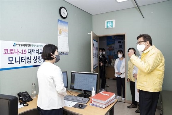 이어 박형준 시장은 부산지역 ‘호흡기 전담 클리닉’으로 지정된 병원인 한양류마디 병원을 찾아 오늘(3일)부터 시행되는 검사 치료체계 전환 상황을 현장에서 직접 점검했다. 또 병원 내 음압 시설 설치 상황과 동선 분리 체계를 비롯한 운영 현황도 살폈다.