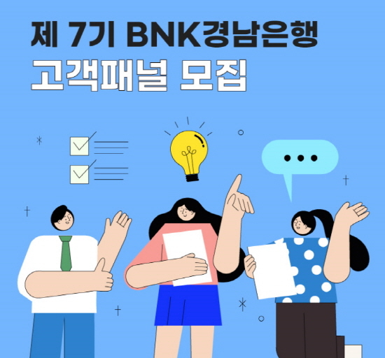 BNK경남은행은 금융소비자의 의견을 듣고 이를 경영에 반영하기 위해 참신한 의견을 제시할 고객패널을 오는 28일까지 모집한다.