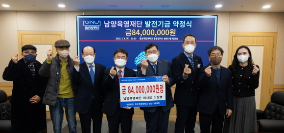 경상국립대학교(GNU)는 재단법인 남양육영재단이 대학발전기금 8400만원을 출연하기로 약정했다고 밝혔다.