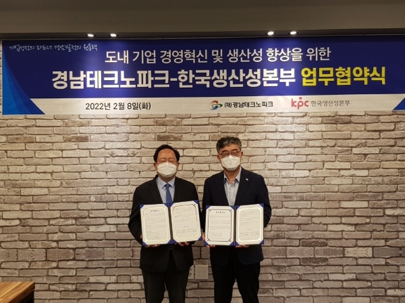 경남테크노파크(이하 경남TP)와 한국생산성본부(이하 KPC)는 8일 경남TP 본부에서 경남지역 기업육성과 지역경제 활성화를 위한 업무협약식을 체결했다.
