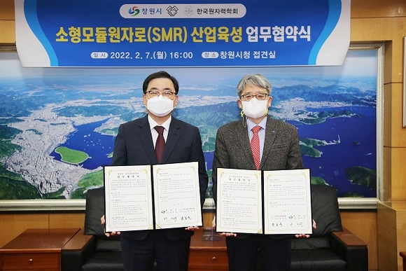 경남 창원시는 지난 7일 시청에서 미래 에너지시장 게임체인저인 소형모듈원자로(SMR) 산업육성을 위해 한국원자력학회와 '소형모듈원자로 산업육성 업무협약식'을 가졌다.