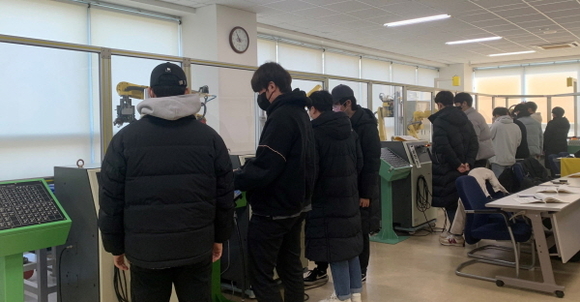 한국화낙 창원 본사에서 진행된 로봇기초과정은 이달 7~9일 진행된 로봇기초1 과정과 9~11일 진행되는 로봇기초2 과정으로 구성된다. 창원대, 경남대, 경상국립대, 인제대 재학생 24명이 참여한다.
