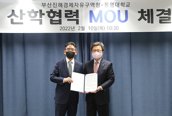 부산진해경제자유구역청(BJFEZ)과 동명대학교가 10일 BJFEZ 본청에서 ‘스마트 물류 분야 연구 협력’ 협약을 체결했다고 밝혔다.