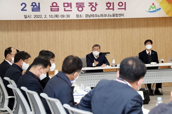 경남 밀양시는 10일 경남테크노파크 나노융합센터 회의실에서 읍면동장 회의를 가졌다.