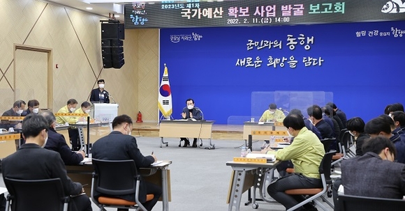 경남 함양군은 11일 오후 군청 대회의실에서 '2023년 제1차 국가예산 확보사업 발굴 보고회'를 가졌다.