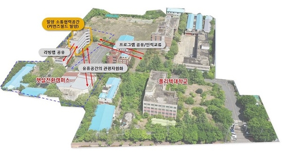 밀양대 활성화를 위한 시의 적극적인 행보로 밀양대에 소통협력공간, 폴리텍대학교, 햇살전환캠퍼스가 함께 들어서게 된다.