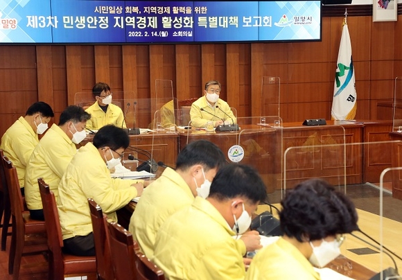 경남 밀양시가 코로나19 확산과 장기화로 위축된 지역경제에 활력을 불어넣고 시민들의 일상을 회복하기 위해 14일 '제3차 민생안정 지역경제 활성화 특별대책 보고회'를 개최, 올해도 지역경제 활성화를 위한 대책 추진에 본격적으로 나섰다.