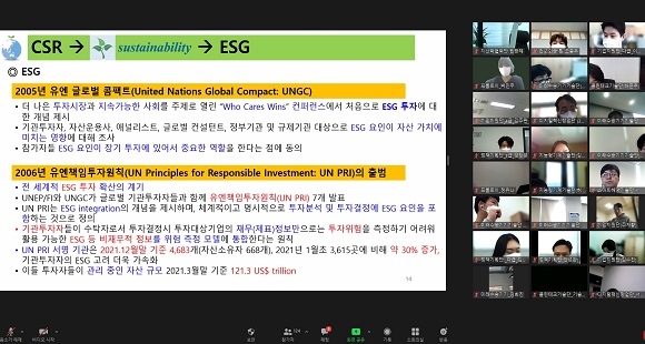 부산테크노파크는 이날 시상식과 함께 전 임직원을 대상으로 ESG 이해도를 높이기 위한 전문가 초청 특강도 비대면으로 진행했다. 동아대 조용언 교수가 ‘국내와 지역 사례 중심 ESG 경영과 이론’을, 포스텍 김진택 교수가 ‘Sustainable Social Design by ESG, 테크노파크와 연계한 ESG 글로벌 사례’ 주제로 강의했다.