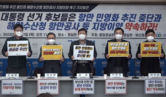 이와 함께 인천, 부산 경실련은 대선 후보자들에 ‘해양수산청’과 ‘항만공사’의 중앙정부 담당이 아닌 지방 이양을 할 것을 촉구하고 나섰다.