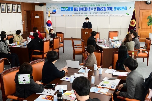 경남도의회 지속가능발전연구회는 16일 도의회 의정회의실에서 탄소중립사회 실천을 위한 'ESG경영 실천 아이디어 도출' 민·관 협력 토론회를 가졌다.