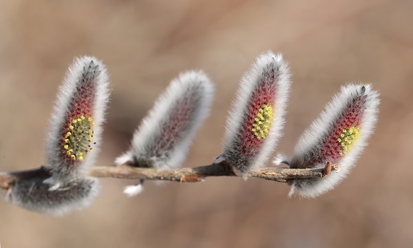 절기상 우수(雨水)를 이틀 앞둔 17일 경남 함양군 마천면 금계마을 앞 엄천강에 버들강아지가 활짝 피어 봄소식을 전하고 있다. (사진=함양군 제공)
