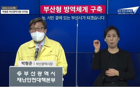 박형준 부산시장이 24일 오전 11시 유튜브 등으로 온라인 기자회견을 열고 현 오미크론 변이 확산에 대응하기 위한 ‘부산형 방역체계’ 수립에 대해 발표했다.