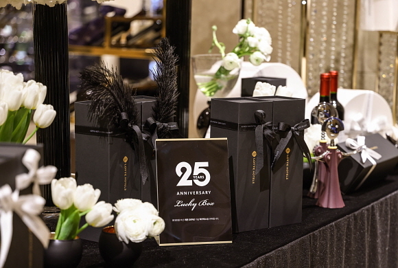 먼저 호텔 1층 베이커리 ‘델리카한스’에서 오늘 오전 11시부터 여러 상품으로 구성된 ‘25주년 기념 럭키박스’를 선착순 250개 한정으로 판매한다. 이는 최고 100만원 상당의 상품부터 최소 45만원 상당 상품으로 구성된 제품으로 1개 박스당 25만원에 판매되며, 프론트에서 결제 후 델리카한스에서 상품을 찾으면 된다.