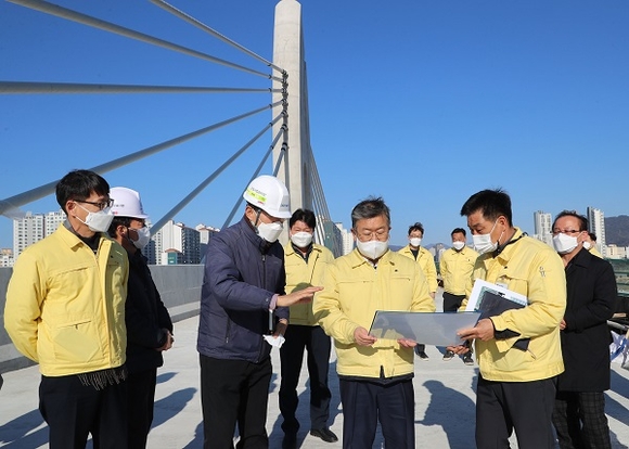 시는 먼저 막바지 작업 중인 삼문동과 부북면 전사포리를 연결하는 총사업비 509억 원의 나노교 건설 현장을 점검했다. 나노교는 나노융합 국가산단과 제대 농공단지, 사포일반단지 물류 개선과 새로운 교통 수요에 대비하기 위해 건설 중인 사업으로 3월 말 준공해 나노교 연결 도시계획도로와 함께 나노산단 활성화에 더욱 큰 역할을 할 예정이다.