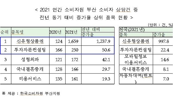 부산시는 한국소비자원 부산지원과 공동 조사한 ‘2021 부산지역 소비자 상담 정보 분석’ 결과를 28일 발표하고 위와 같이 밝혔다.