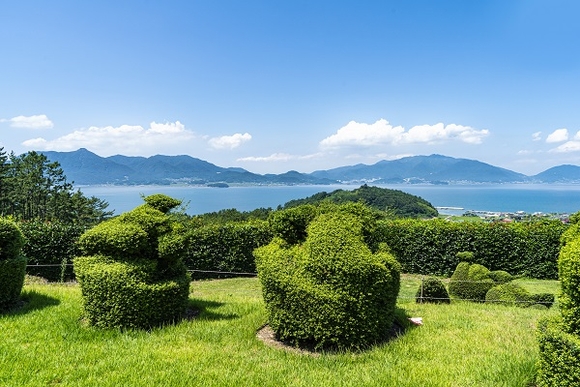 ▲토피아랜드(남해)= 나뭇가지를 다듬어 여러 가지 모양을 만들어 낸 우리나라 최초의 토피어리 테마정원인 토피아랜드는 울창한 편백나무 숲에서 피톤치드를 만끽하면서 푸른 남해 앞바다를 시원하게 조망할 수 있는 공원이다. 야생화와 상록수가 많아 사계절 내내 푸른 공원이며, 곳곳의 포토존은 인생사진을 남기기에 더할 나위 없는 곳이다.