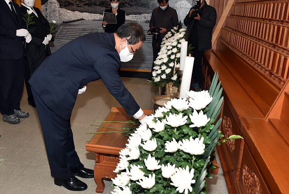 지난 1일 오전 부산광복기념관에서 ‘제103주년 3.1절 기념식’이 진행된 가운데 김석준 부산시교육감이 헌화와 분향을 하고 있다. 부산시교육청에 따르면 이날 기념식은 김석준 시교육감을 비롯해 박형준 부산시장, 신상해 부산시의회 의장, 임성현 부산지방보훈청장 등이 참석한 가운데 진행됐다. (사진=부산시교육청 제공)