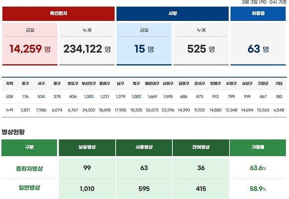 시 방역당국은 3일 오전 11시 유튜브 등으로 코로나19 일일 온라인 브리핑을 열고 어제 하루 동안 신규 확진자가 1만 4259명 나오며 누계 23만 4122명 기록했다고 발표했다.